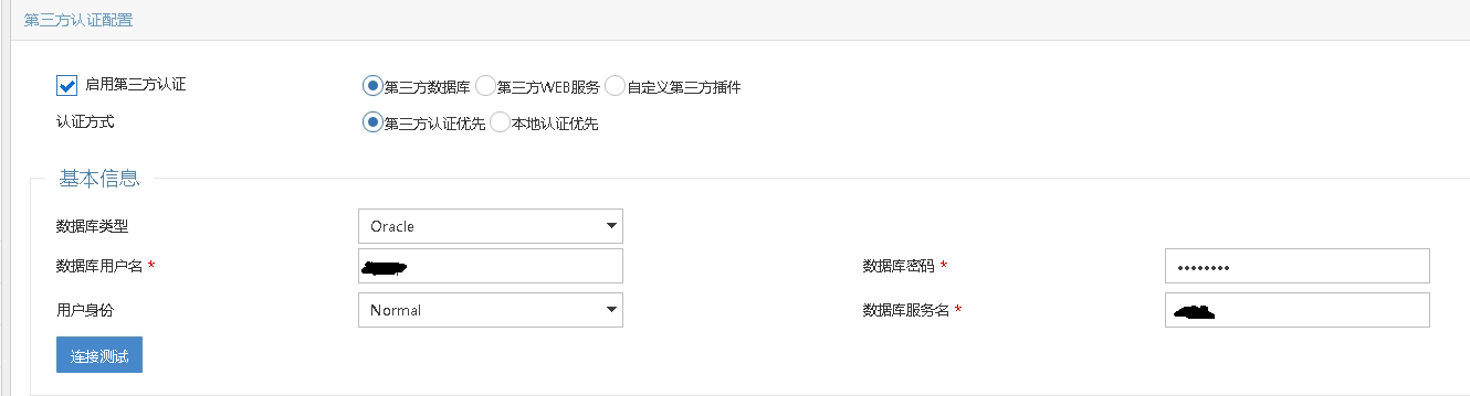 因我单位新建了统一身份认证平台,用户上网账号需要与统一身份认证平台的账号统一,按照华三官网《iMC EIA 7.3有声视频配置案例-5PW102 第三方认证-第三方数据库》的方法,进行了第三方认证配置。 我单位统一身份认证平台使用Oracle数据库,拟采用第三方数据库认证方式
