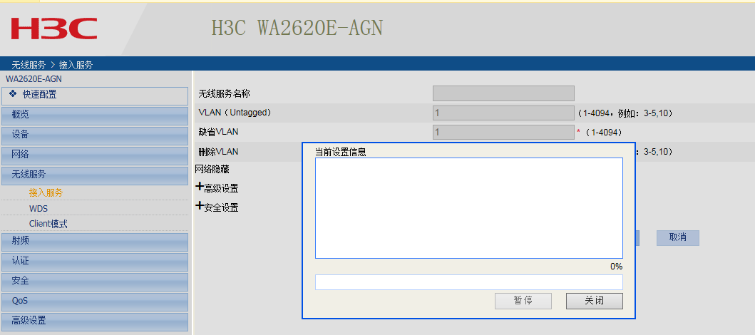 我把WA2620E-AGN刷成了FAT格式,2个固件都试过了(WA2600-CMW520-R1122P30-FAT和WA2600-CMW520-R1122P11),都是无法修改无线信息,VLAN那个输入信息后保存不了,然后加密方式空白没有东西选。 可能我不会设置