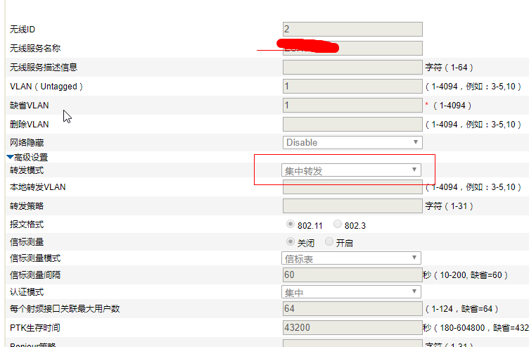 WX3024E,WIFI信号是经过MAC认证,然后集中转发的,带了15台4320I 的AP ,目前带机量451,一半手机,一半笔记本,效果很不好,有时钉钉都掉线,网上查询说本地转发比集中转发效果好,所以想换成本地转发。