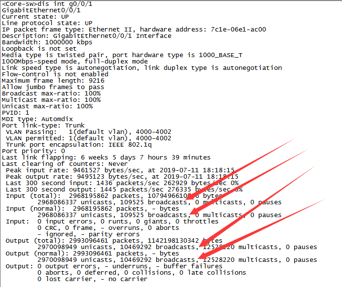 display ip interface可以看到每个接口下的报文类型个数,可以看看ttl invalid packet number这个数值,如果一致在增加,就是有三层环路