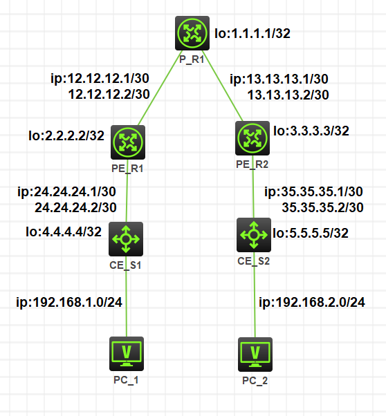 用hcl模拟器做MPLS VPN,bgp邻居和mpls ldp邻居建立正常,但是vpn实例的ospf和bgp双向引入的时候无法引入路由,很奇怪,不知道哪里配置错了,请大佬解答一下,同配置下ensp正常。