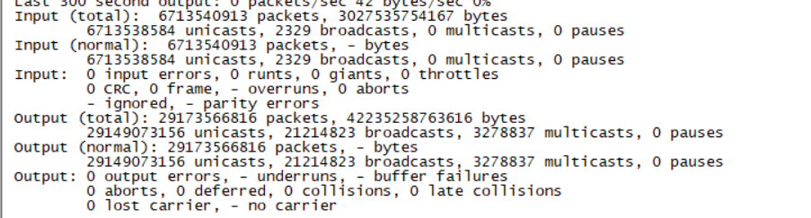input跟output对比没有意义,报文不都是对称的,看看有没有error报文,如果怀疑设备有丢包,可以对设备做流通,流通方法可以到知识库搜一下