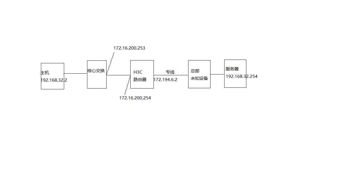局端内网有网段192.168.32.0段通过路由器连接总部内网服务器192.168.32.254.