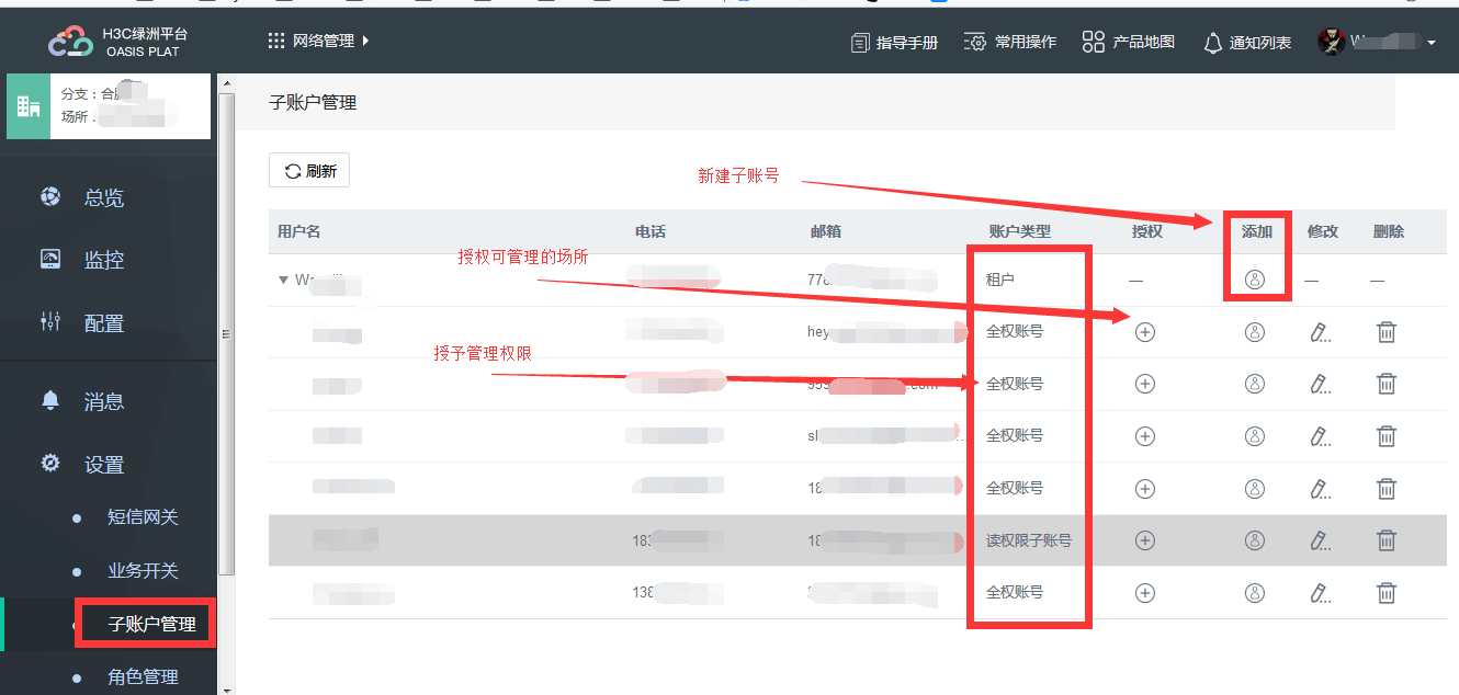 不推荐多人登录共用一个账号,假如因操作失误造成问题这也不利于定责,难听点叫 甩锅,绿洲支持子账号形式来管理,如图: