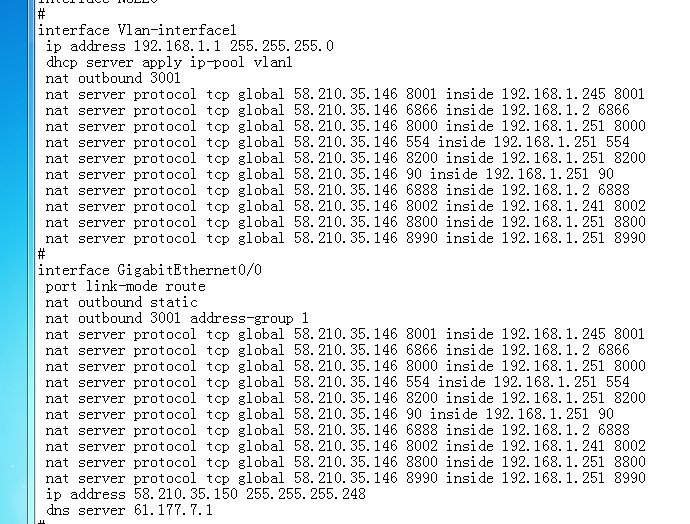 内网主机都是192.168.1网段吗?如果是其他网段访问192.168.1端的服务器,应该是在内网主机网关接口配置nat server,而不是服务器的内网网关接口上配置,如果就是192.168.1主机访问那可以再命令行输入debug nat packet ,v7平台设备nat packet后面可以跟acl,回车后输入te de ,te mo查看地址转换过程
