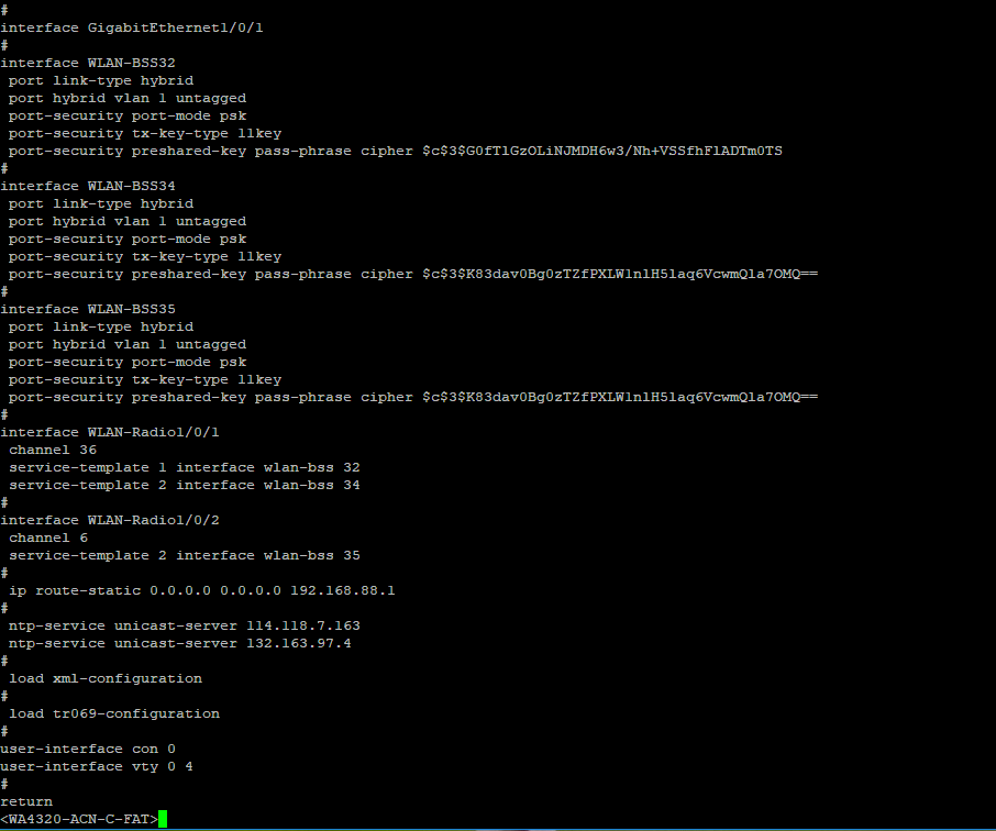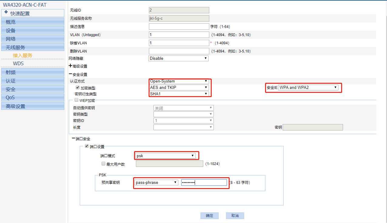 通过WEB界面配置,以及配置后参数如下图所示:(无线id 1,2 都提示密码错误,但明明就是对的,试了很多次一直都是提示密码错误,但是更换成WEP弱密码或者不设置密码可正常连接,手机终端支持这种方式认证,有一台网件ap就是这种认证方式可正常使用)