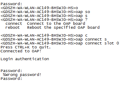 默认进的是业务板卡,需要切换到接口板卡,但是不知道密码,业务板卡的密码知道