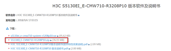 #华三官网下载所需要的升级版本,本案例以S5130-EI为例。如若是其他型号,根据具体的型号下载对应版本。