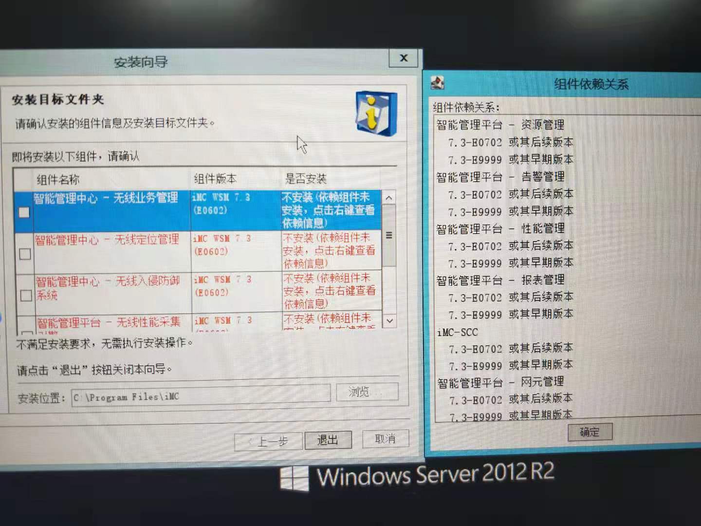 为什么imc无法安装wsm组件,imc是iMC PLAT 7.3 (E0703),wsm是iMC WSM 7.3 (E0602)