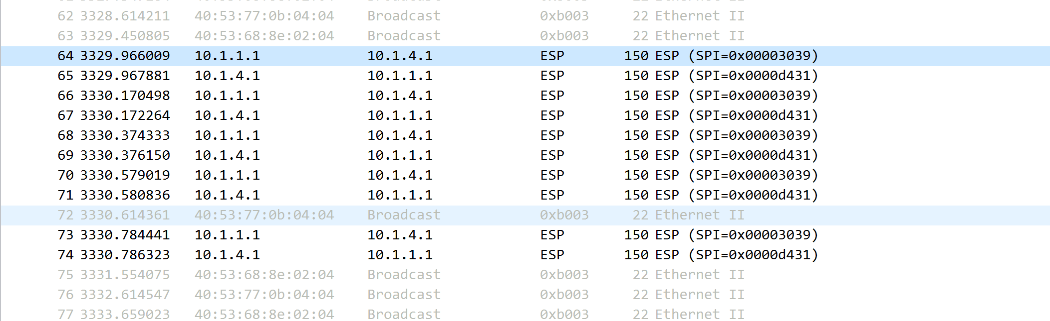 用hcl搭建了ipsec隧道,A B路由之间跑esp报文