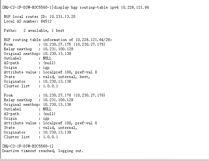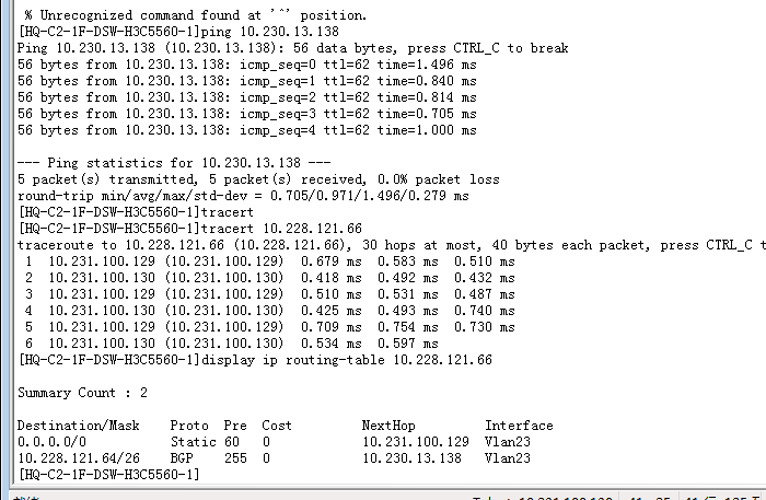 请问为啥 ,10.228.121.66 选择默认静态路由0.0.0.0 而不走 BGP路由 10.231.13.138(直连)?? 接口没策略路由!