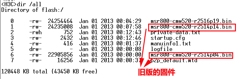 H3C MSR830-10-Winet 升级固件后使用console接口连接查看,发现还有原来的老固件存在,可以删除老固件吗??以下有截图