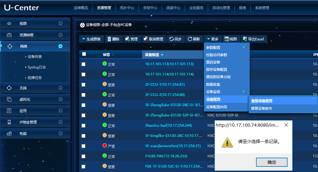 自动化管理下可以进行设备配置备份