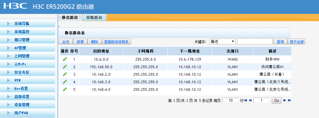 设置了5条,但是出口是LAN口的四条就是不生效,导致我无法访问