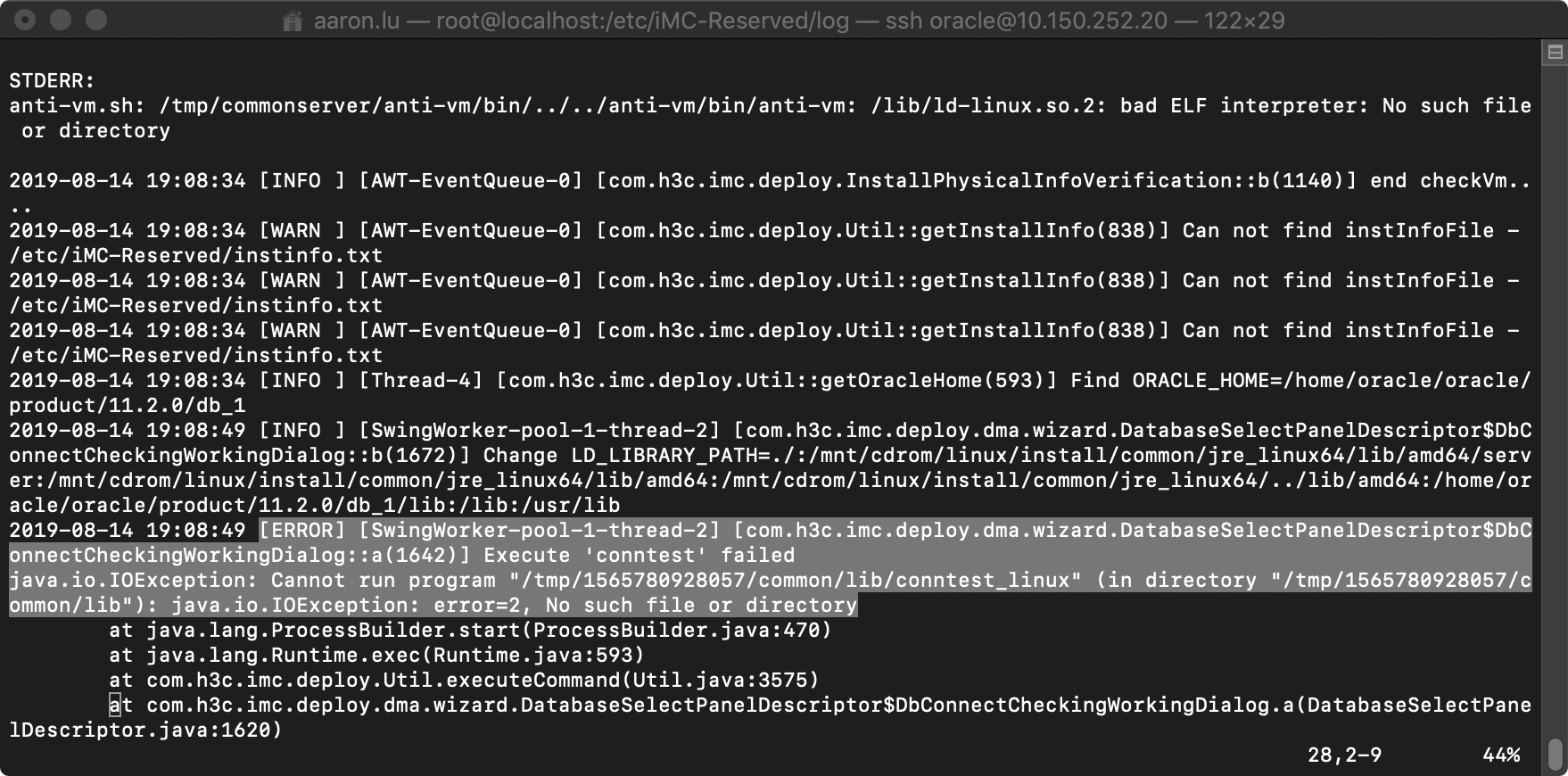 在centos7下安装imc,图形化界面在连接数据库时候报错,查看log碰到以下报错,在hp论坛上看到案例是缺少组件,有没有清单之类提供排查下需要什么组件