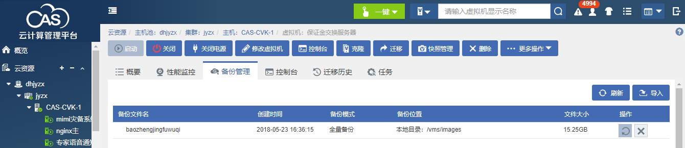 各位老师:我现在CAS平台下有一台虚似机有问题,之前 做了一个全量备份,我现在想要恢复一下这台虚似机的系统。具本要怎么操作.