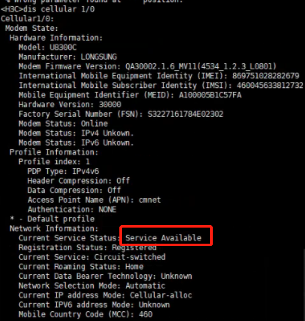 log报错Controller Cellular1/0: IPv4 dialing failed. Reason: Data call failed。