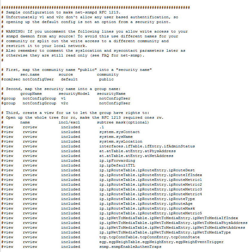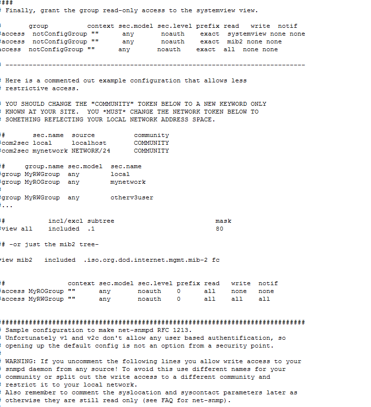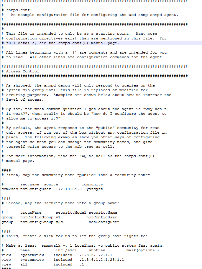 这是在/etc/snmp/snmpd.conf目录下找到的 SNMP配置文件 麻烦问下 哪个关键字为 读和写的关键字