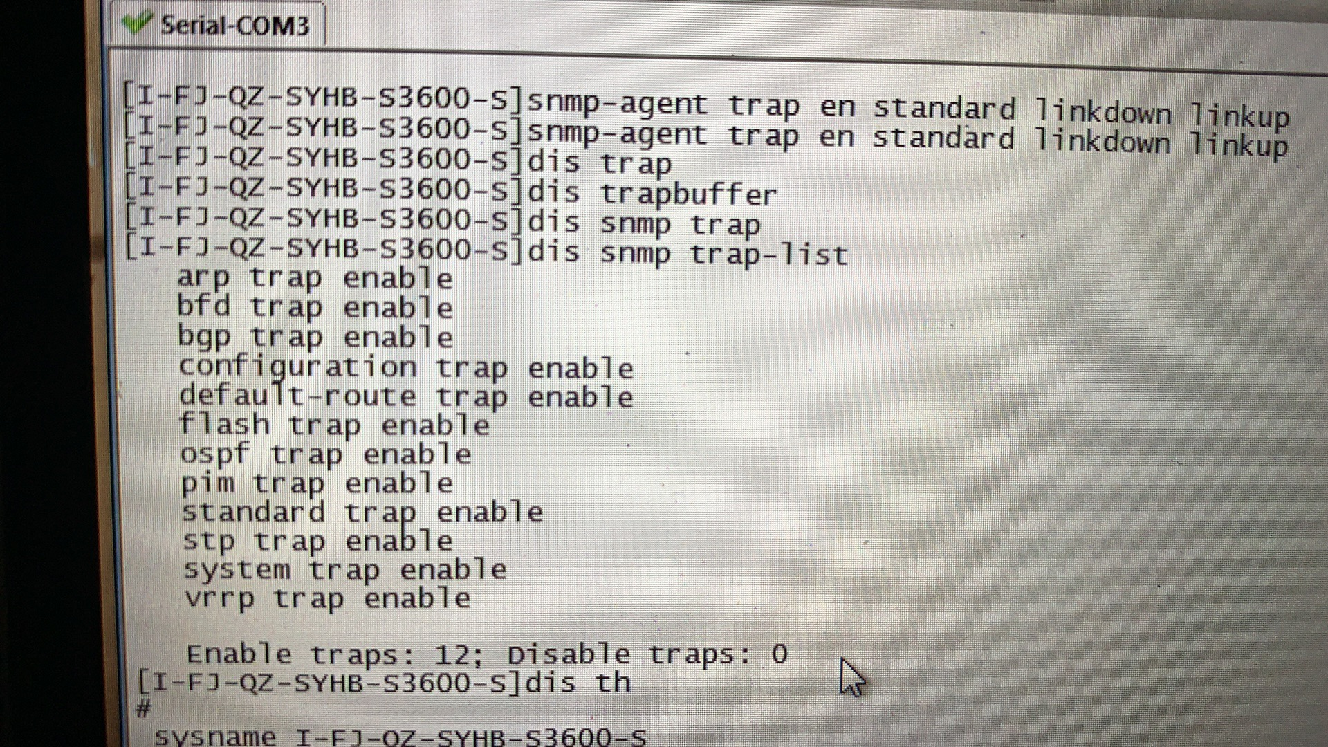 S3600V2交换机V5版本的,配置完trap能成功发送报文,对端可抓包,但是科东设备上查看不了。后面发现多了:snmp-agent trap if-mib link extended