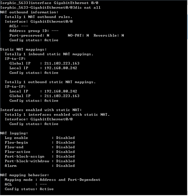 [orphic_5633-GigabitEthernet0/0]dis nat all