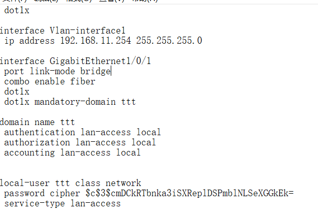 这个是交换机配置 使用inode客户端一直认证失败。。求大佬们帮忙分析下。。客户端是直接连接交换机1端口得