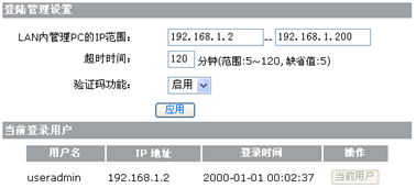 开启/关闭Web登录页面验证码功能(选择功能状态,单击<应用>按钮生效)