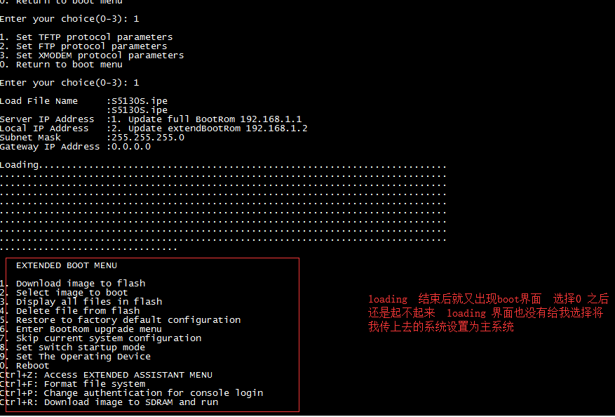 s5130s-52s-ei交换机ctrl+F 格式化后,下载官网最新版本 .ipe文件 ,重新装版本,TFTP装不上去,是什么情况