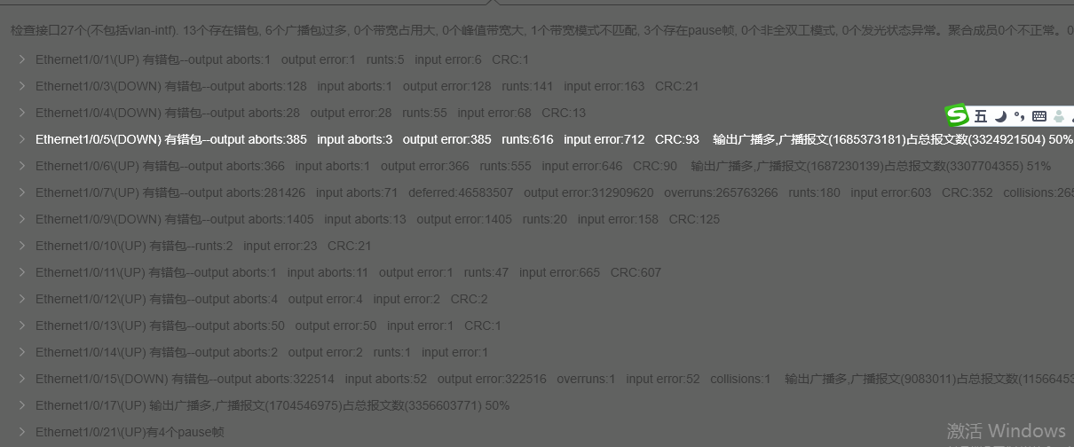 交换机收到大量的错误包及广播包,部分端口监控无法显示