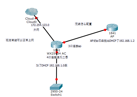 往后的调试也不大会,希望有大手能教教我怎么弄。。放个拓扑。ac是 192.168.1.1