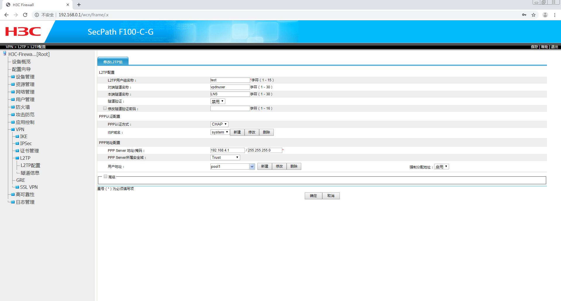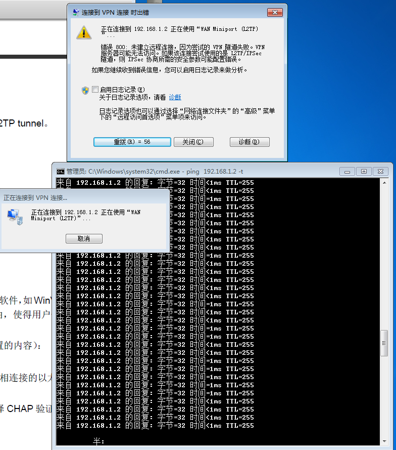根据H3C的VPN手册设置L2TP VPN但是拨号一只出现错误800,换电脑拨号问题依旧,防火墙和杀毒软件都已关闭