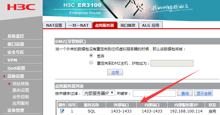 我在路由器里面创建了这个1433的端口,为什么用SQL SERVER访问公网IP+1433端口号的地址不能连接数据库,直接用这个192.168.100.114的内网地址可以