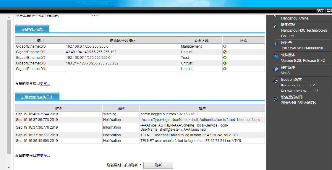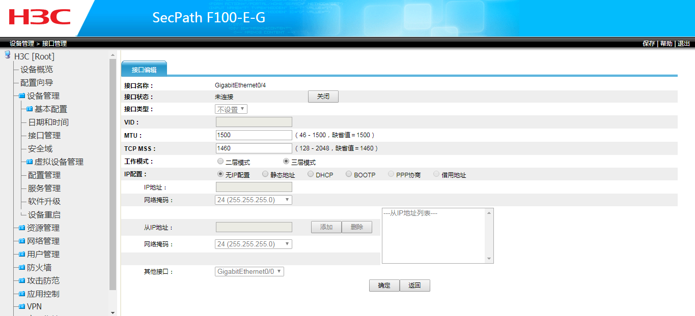 [H3C-security-zone-Untrust]import interface GigabitEthernet 1/0/3