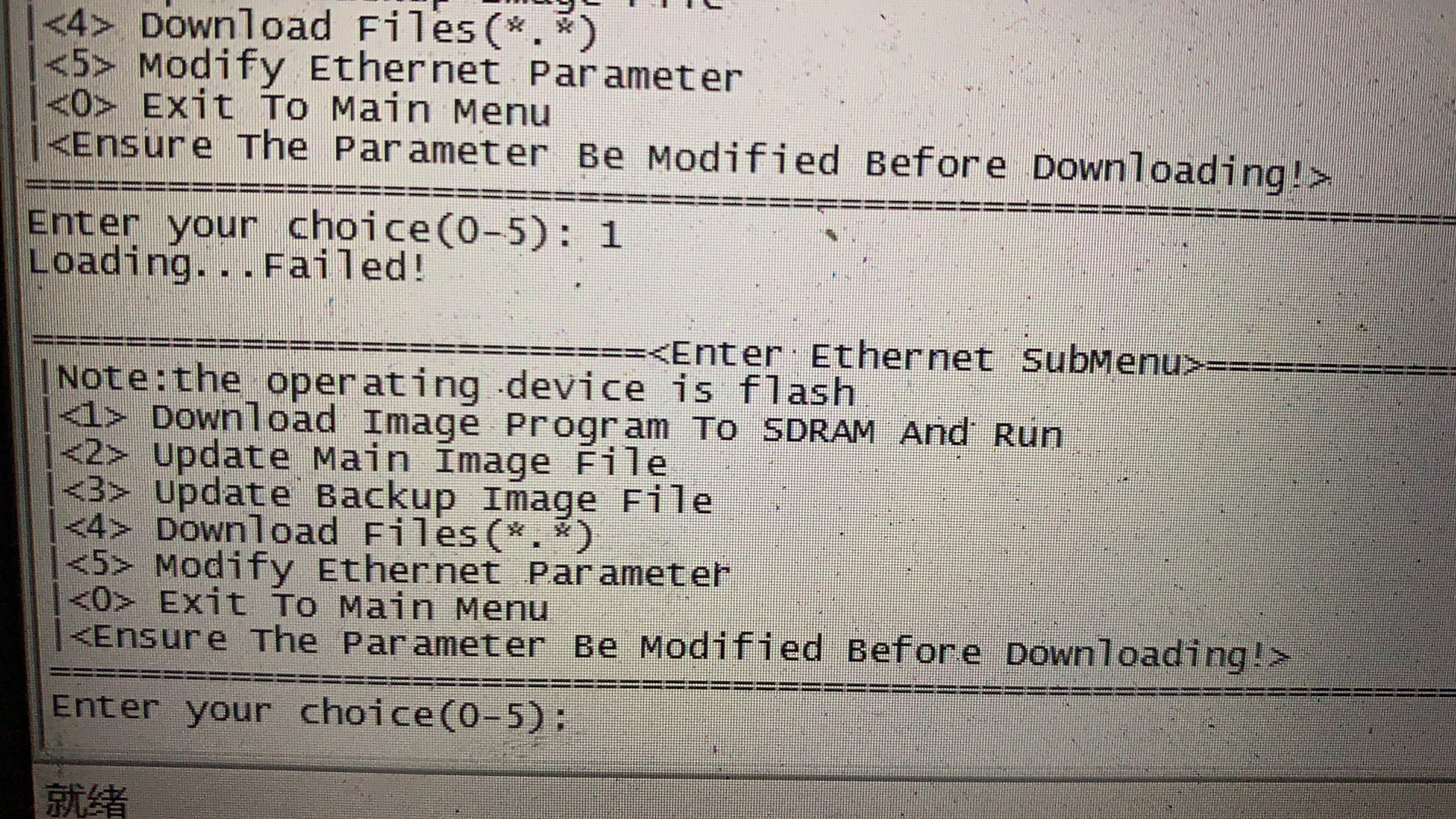 在选择1下载到sdram时失败,这个是什么问题,麻烦大神指点