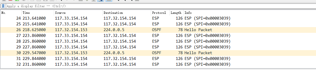 第一个抓的包就是IPsec匹配流量,第二个是进入站点后把ESP的包解开了,然后显示的就是内网的地址。