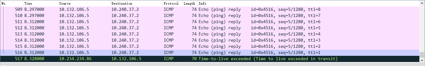 解密之后,内网地址应该是106和37网段吧,和10.234.234.0没有关系,上面看106回包给37,一直在ttl减少,是不是有路由环路?