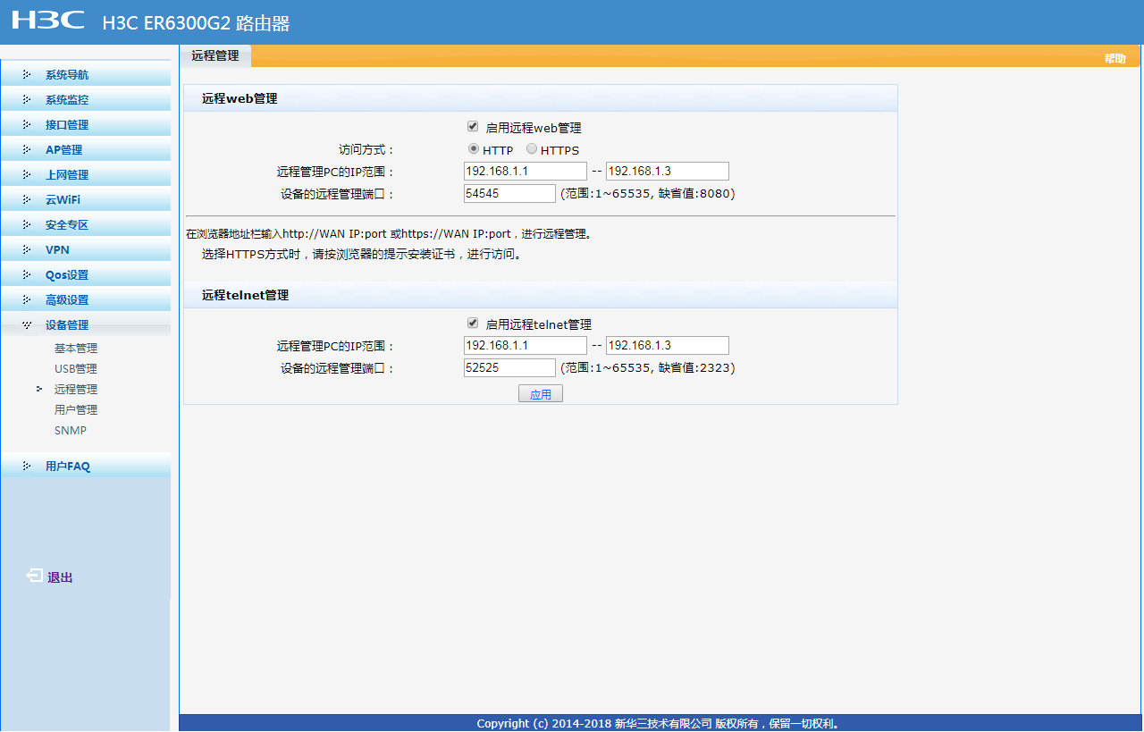 描述有问题。内网登录的话,用ERG2内网的任一IP地址,只要能PING通这个路由器上的地址。 远程管理是针对公网IP登录的