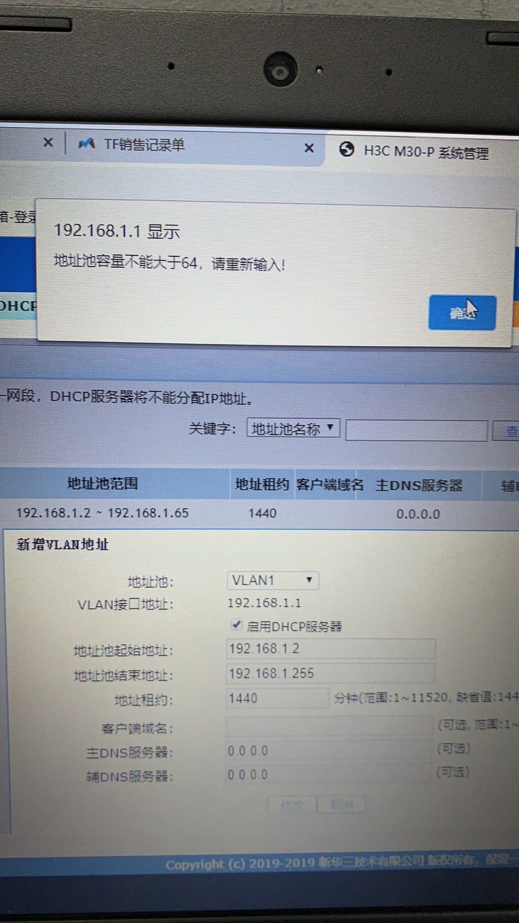 那这个估计是版本问题,可以打华三售后电话确认下设备最大是不是就支持64个地址