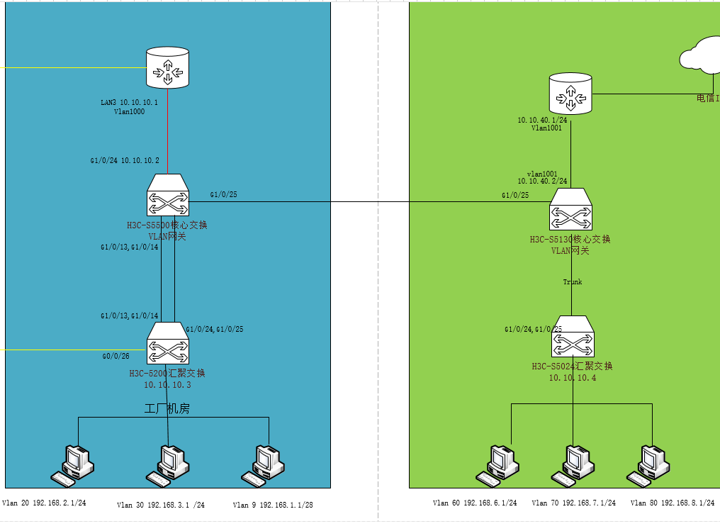 您好! 感谢您的解答。因为我的水平挺菜的。不太明白用地址互联是什么意思。 这两个交换机并没有使用地址互联。因为使用的是2层端口。端口是配置成trunk的。目前无法ping通。是要配置成三层端口并配上IP吗