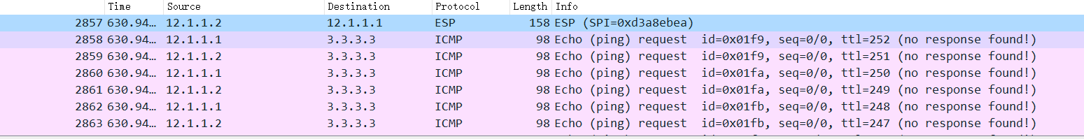 路由器4和5是充当IPSec vpn的设备,野蛮模式,FW2的公网地址模拟成非固定的地址,在4和5上查看ike 的sa 和ipsec sa都是正常建立的,但是ping的时候FW1和FW2之间的抓包发现数据包并没有IPSEC的封装,