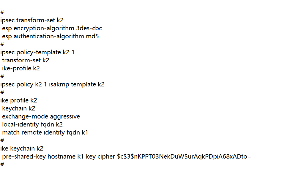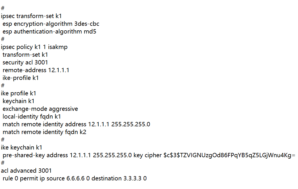 FW接口上就这些东西了 interface GigabitEthernet1/0/0 port link-mode route combo enable copper ip address 12.1.1.2 255.255.255.0 nat server protocol udp global 12.1.1.2 500 inside 25.1.1.5 500 nat server protocol udp global 12.1.1.2 4500 inside 25.1.1.5 4500