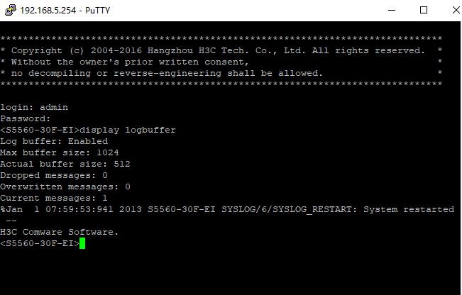 你好,使用中一台S5560-30F-EI,通过web访问用户名密码用了admin后,日志只有1条,关键这日志显示时间是2013年的(机器的购买时间是2017年),现在公司开发的软件需要过等保,操作,日志要都有才行,日志只有2013年1条内容可不行,我该怎么操作,请指点,谢谢。