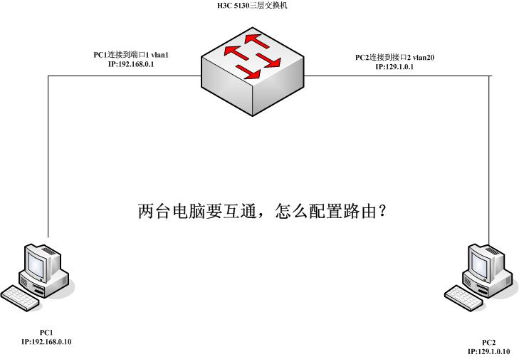 第一次接触三层交换机,菜鸟一个,现在划分了一个Vlan20 跟系统默认的Vlan1 想做互通
