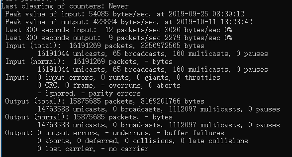 Last 300 second input: 0 packets/sec 0 bytes/sec -%