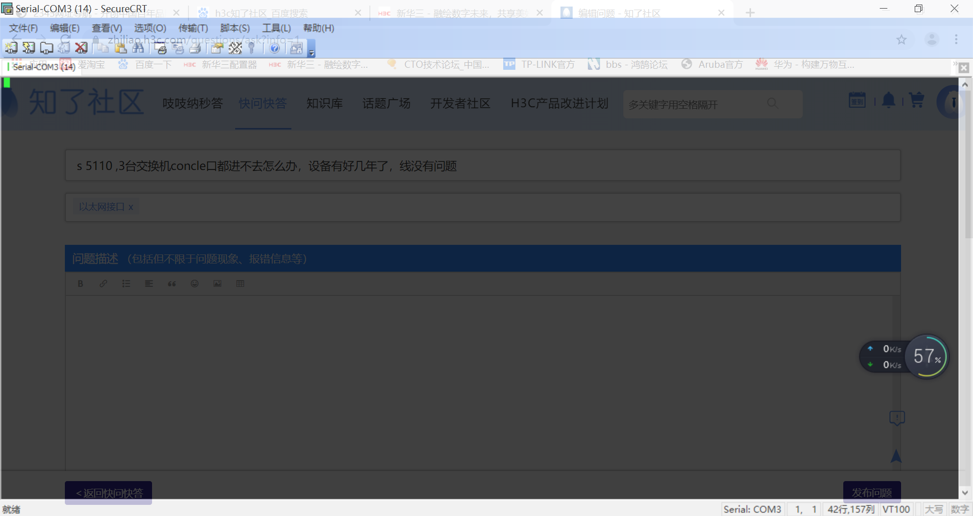 那你还是只能找找线跟CRT的问题了,三台都进不去,总不可能是设备坏了吧。 CRT com口那个绿灯你只要usb转接线插上去就是绿色 至于console口那一端是不是连上去了,线有没有问题,你还是找个其他设备能登进去了,才能说明线没问题。