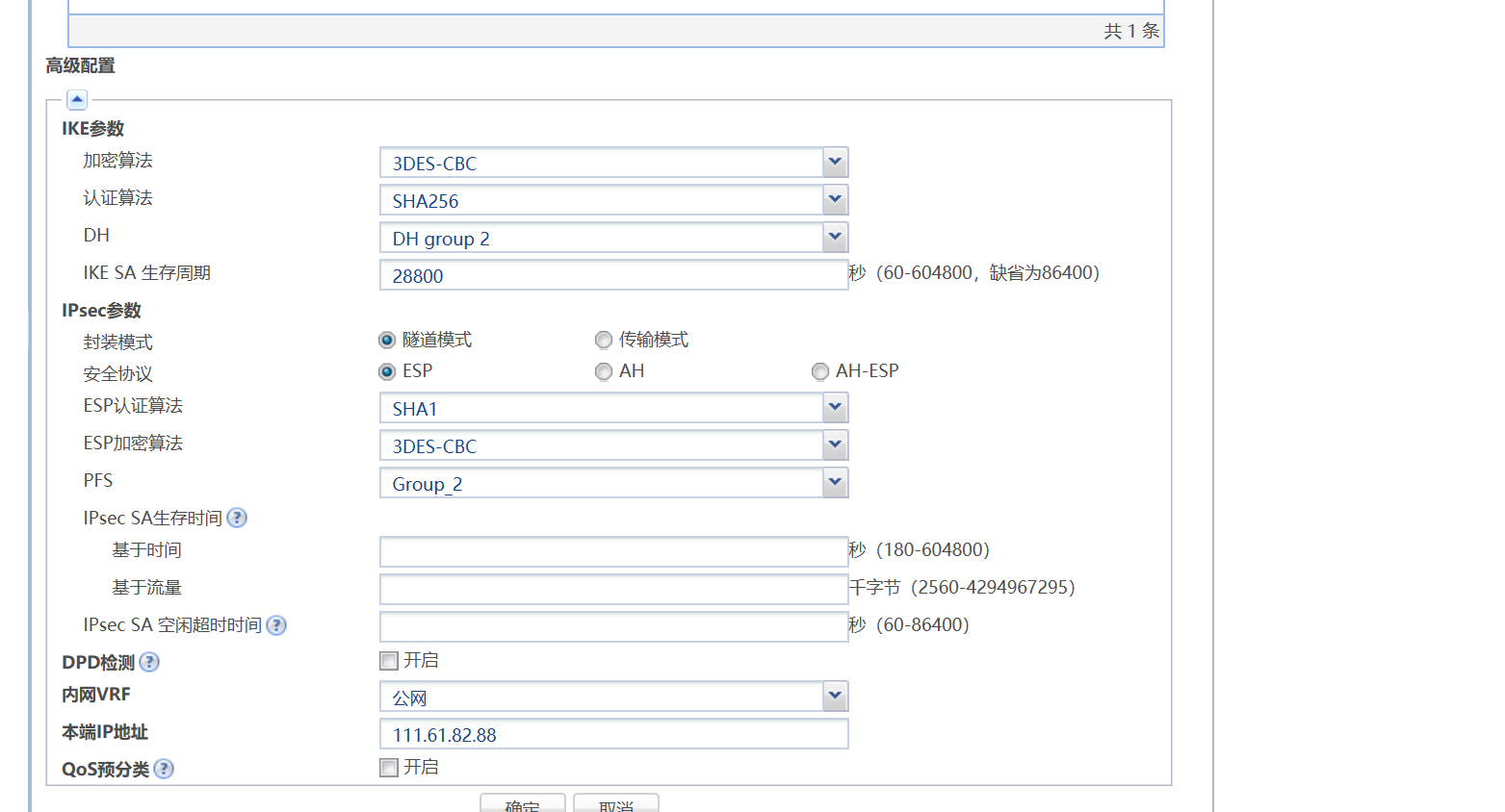 共享密钥填写完了,确认后,IPsec VPN始终建立不起来,对端是深信服的设备,那边提示的信息是存在NAT
