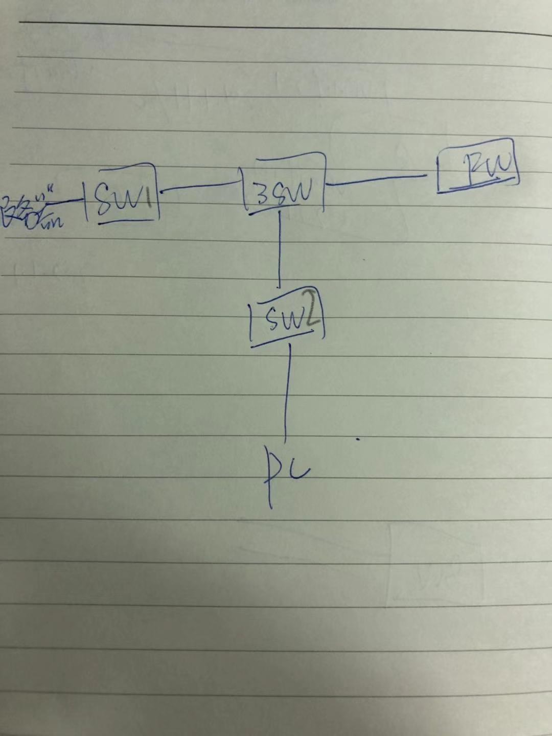 要服务器的流量先经过防火墙(fw)然后流量从防火墙出来到核心交换机(3sw)再进入sw2到达pc终端。有什么方法!!!