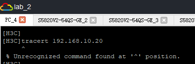 HCL 的 PC 设备命令有限,命令行输入 ? 可以看到命令列表没有tracert 命令