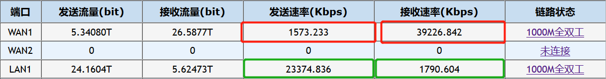 想请问下,这款路由器自带的流量统计功能的发送和接收是什么意思,如果WAN1的发送是上传速率,接收是下载速率的话,LAN1的发送和接收又是什么意思呢。