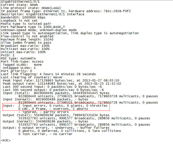 请问交换机端口出现如下input errors,表示端口有异常吗?谢谢!