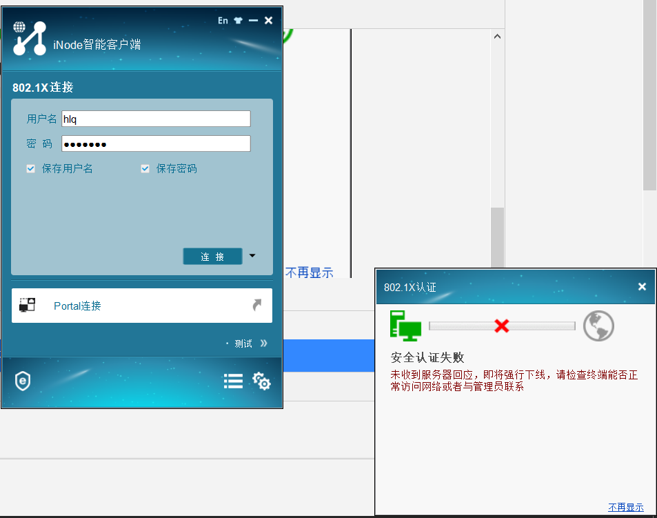 通过IMC做802.1X认证服务器时,客户端是使用的indeo..但会提示上面的错误信息